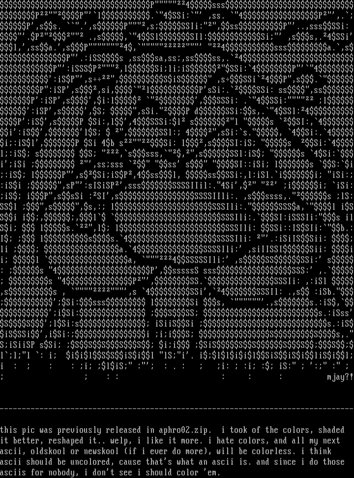 ascii, oldskool or newskool if i ever do more, will be colorless. i think
