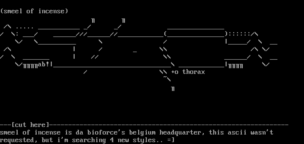 smeel of incense is da bioforces belgium headquarter, this ascii wasnt