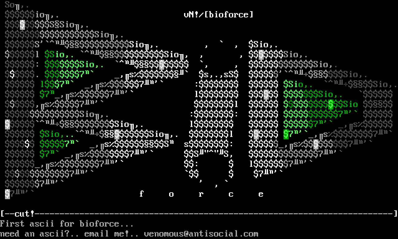 --cut!------------------------------------------------------------------------First ascii for bioforce...