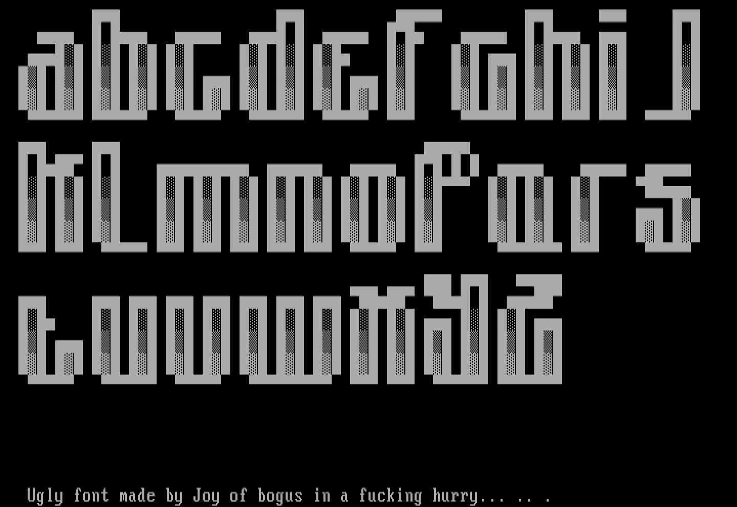 Ugly font made by Joy of bogus in a fucking hurry... .. .