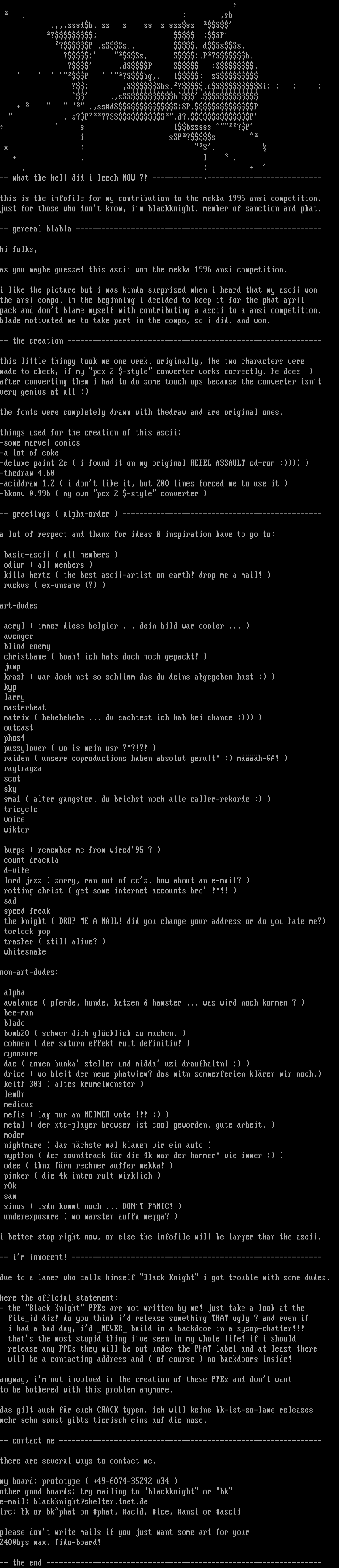 as you maybe guessed this ascii won the mekka 1996 ansi competition.