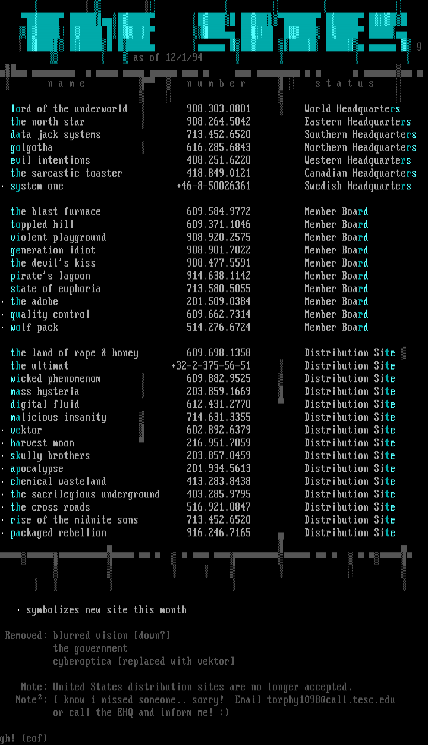 - 12/94 Sites List
