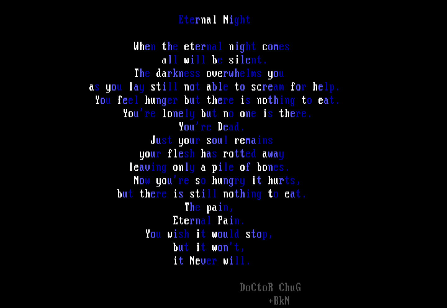 [24C[1;37mT[34mh[0;34me [1;37mda[34mrkn[0;34mes