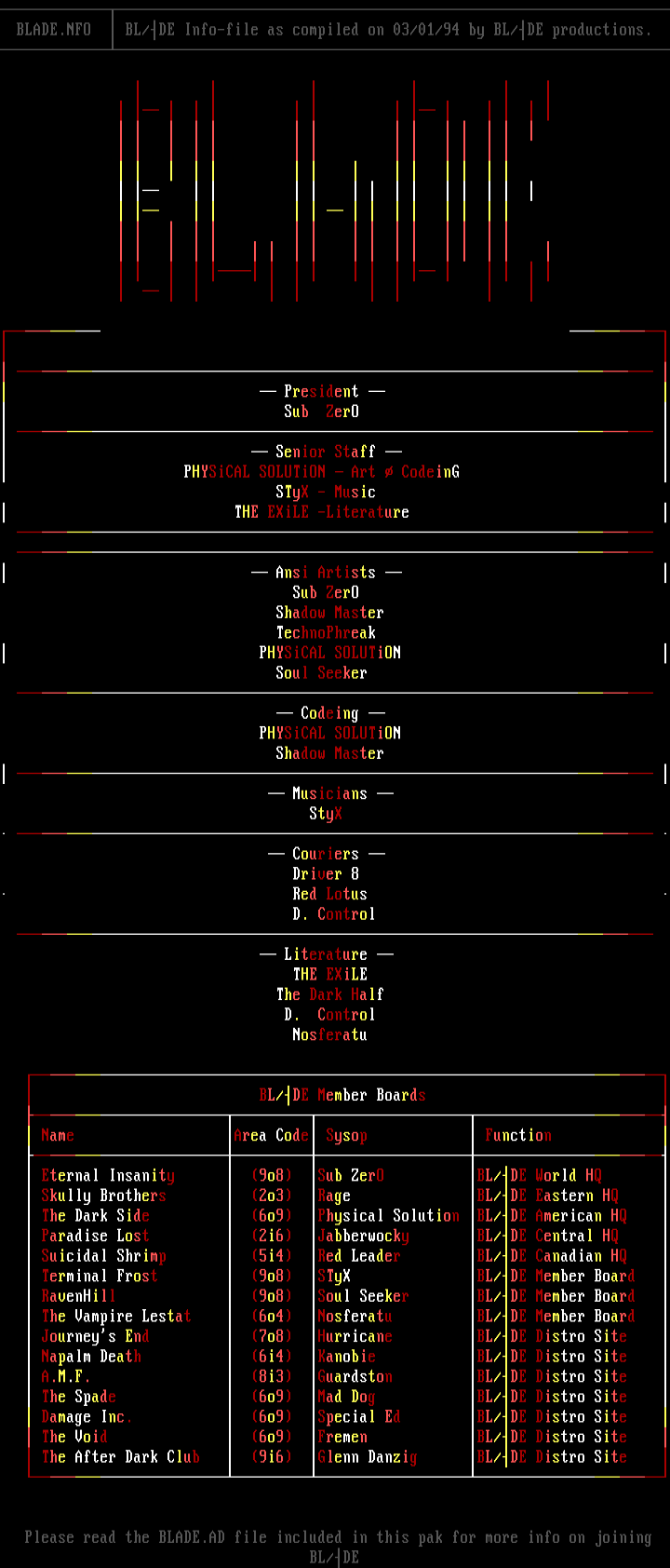 E.NFO BL/DE Info-file as compiled on 03/01/94 by