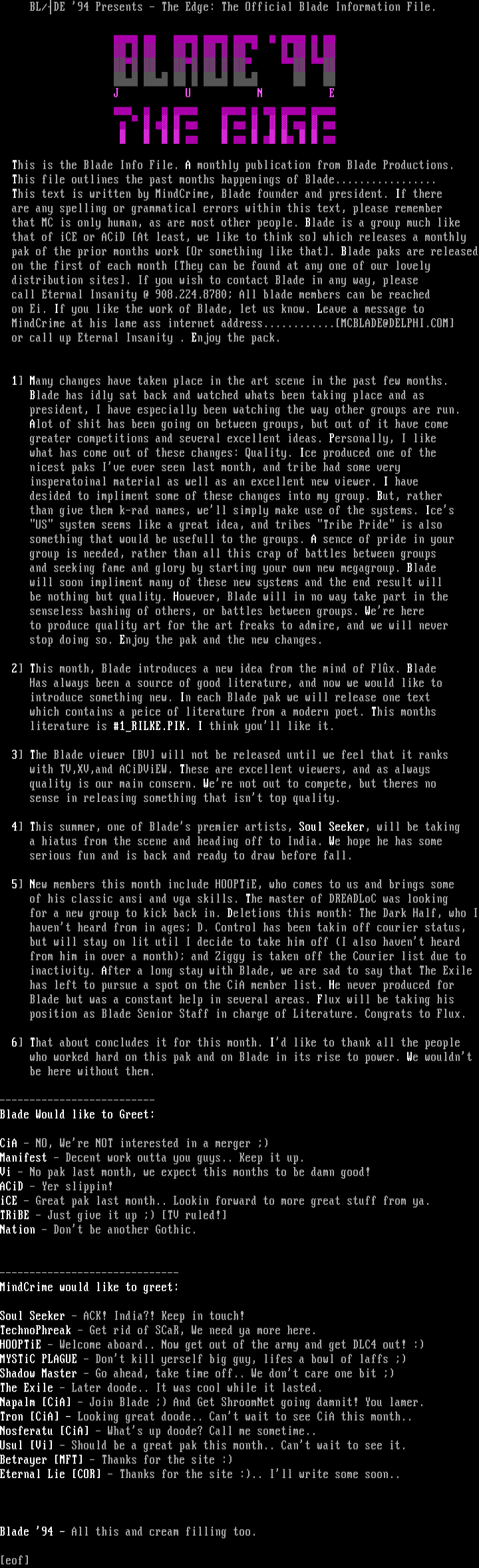 This is the Blade Info File. A monthly publication from Blade Productions.