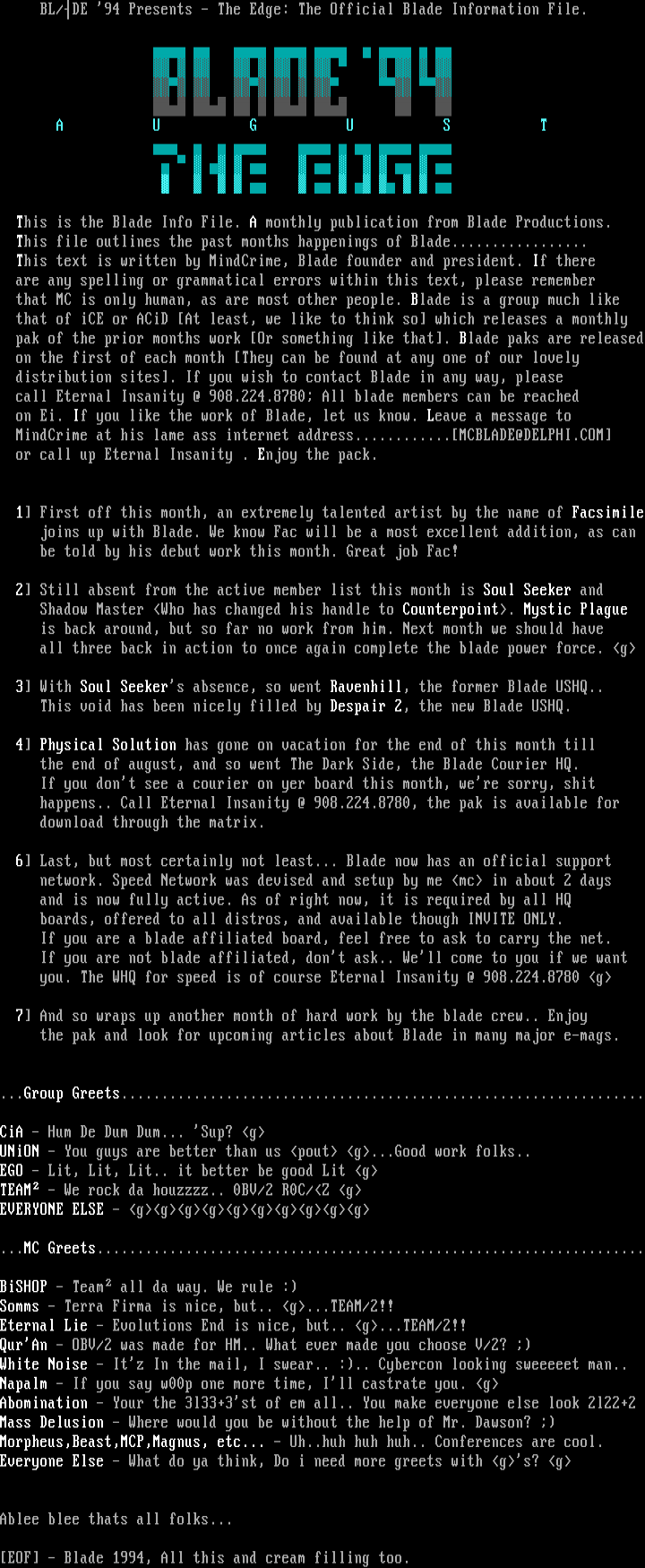 call Eternal Insanity @ 908.224.8780 All blade members can be