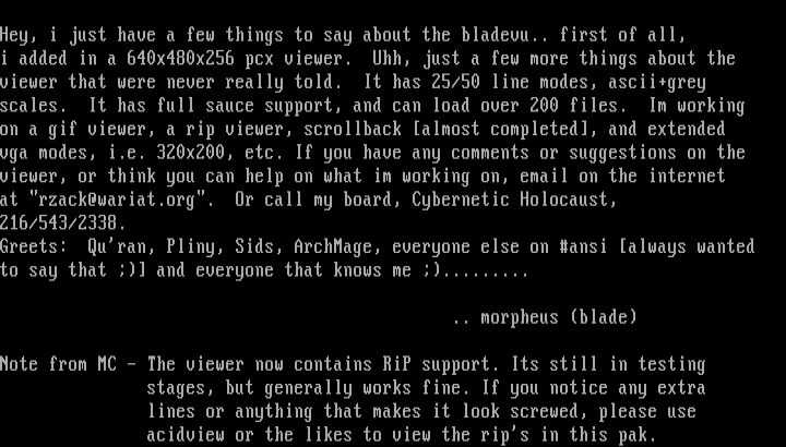 Greets: Quran, Pliny, Sids, ArchMage, everyone else on ansi always wanted