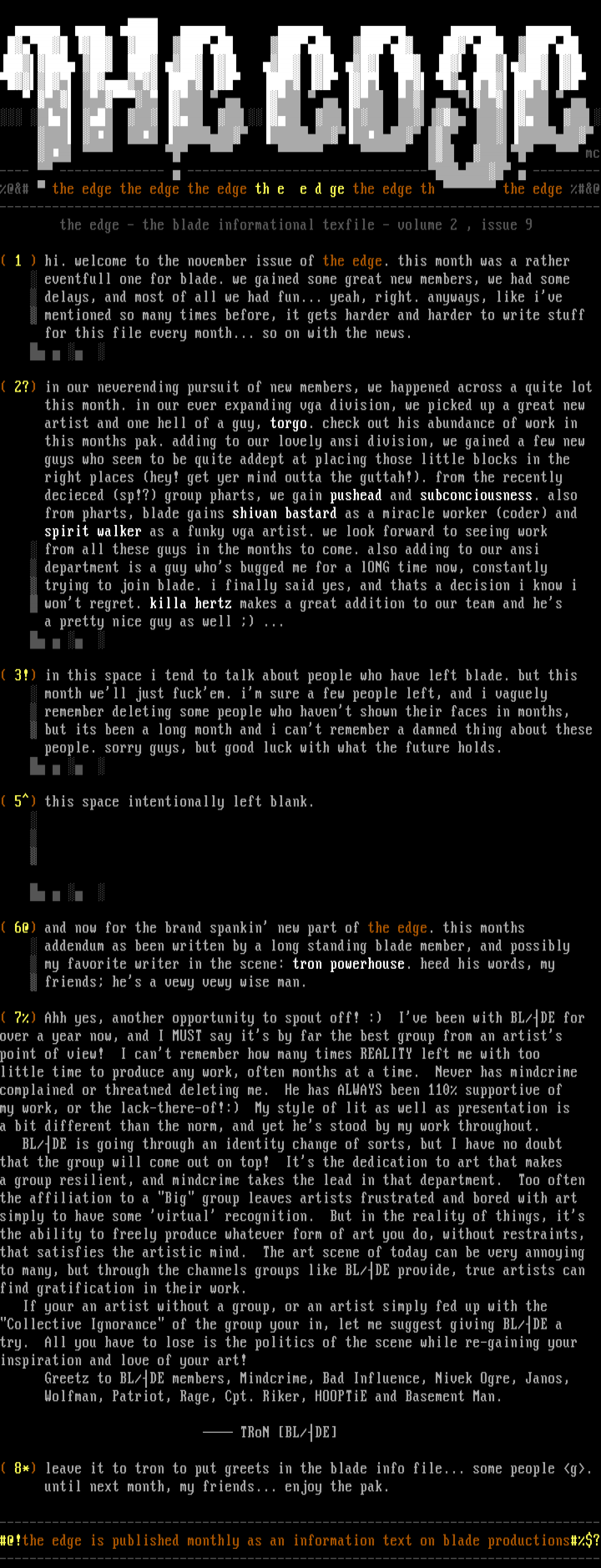 Greetz to BL/DE members, Mindcrime, Bad Influence, Nivek Ogr