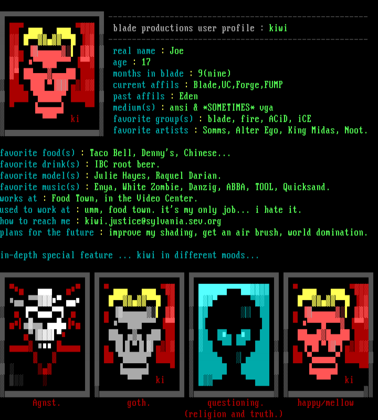 favorite musics : Enya, White Zombie, Danzig, ABBA, TOOL, Quicksand.
