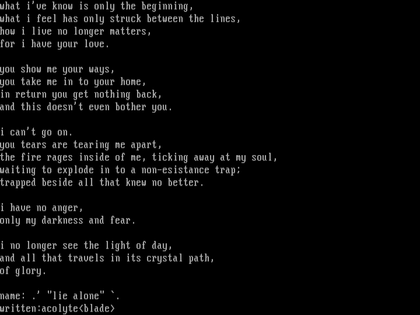 - 'lie alone'