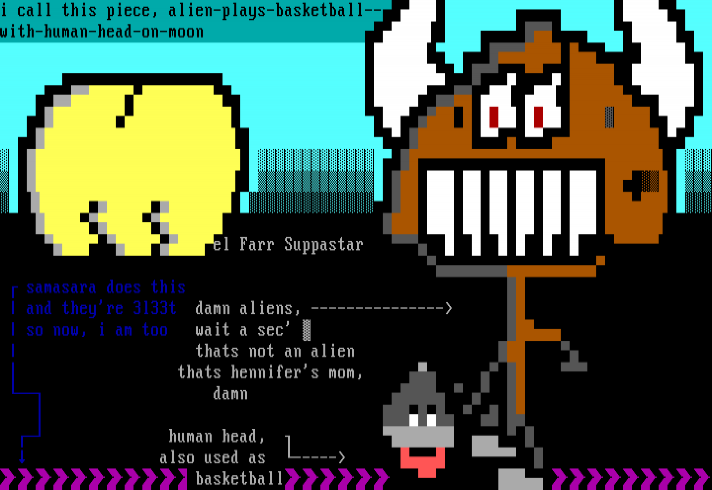 i call this piece, alien-plays-basketball-- with-human-head-on-moon