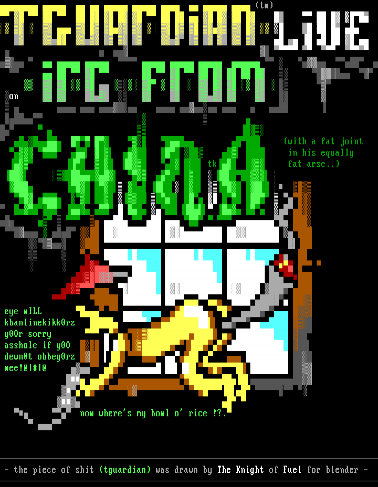 - the piece of shit tguardian was drawn by The Knight of Fuel for blender -