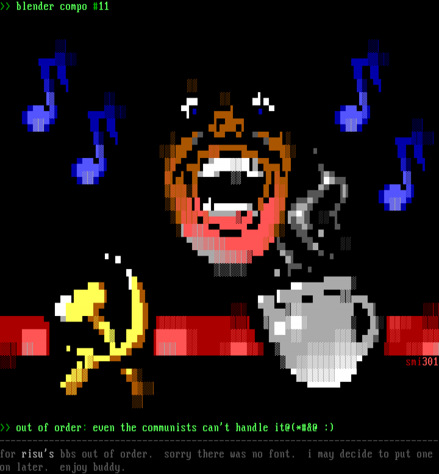 --------------------------------------------------------------------------------for risus bbs out of order. sorry there was no font. i may decide to put one