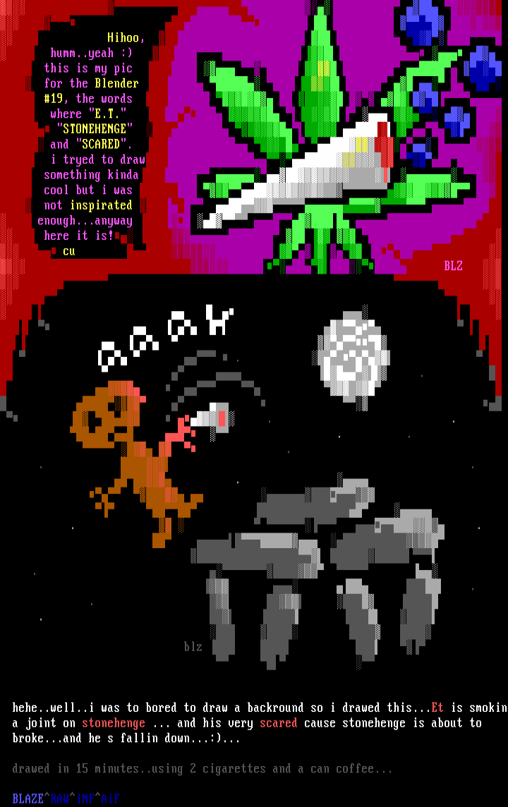 hehe..well..i was to bored to draw a backround so i drawed this...Et is smokin a joint on stonehenge ... and his very scared cause stonehenge is about to