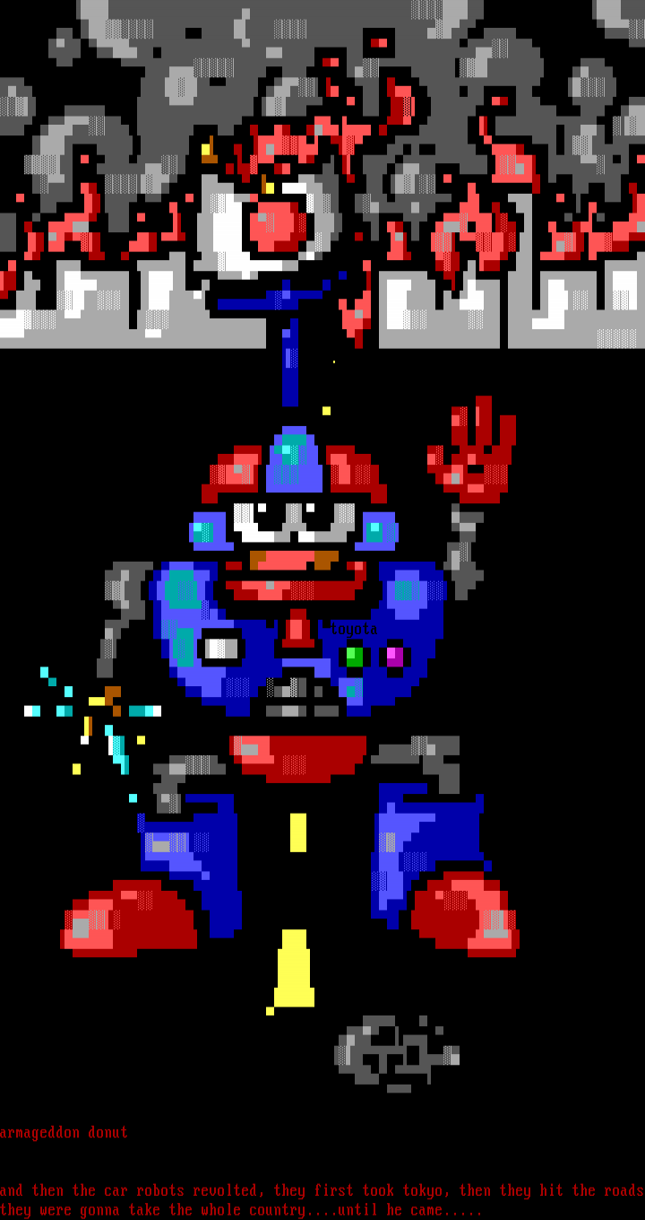 and then the car robots revolted, they first took tokyo, then they hit the roadsthey were gonna take the whole country....until he came.....
