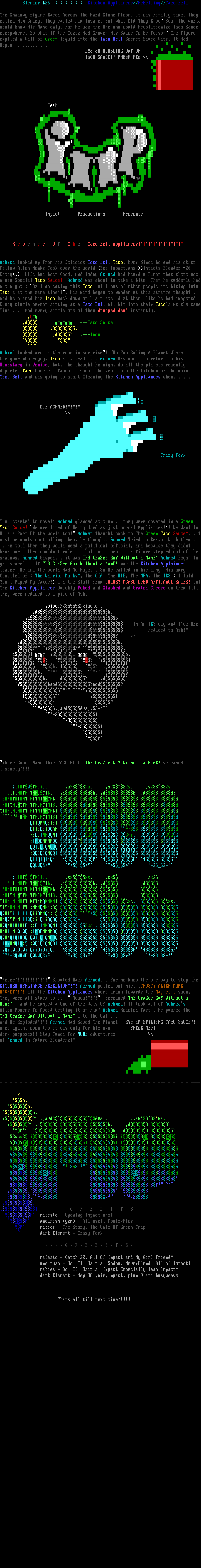 emptied a Vail of Green liquid into the Taco Bell Secret Sauce Vats. It Had Begun .............