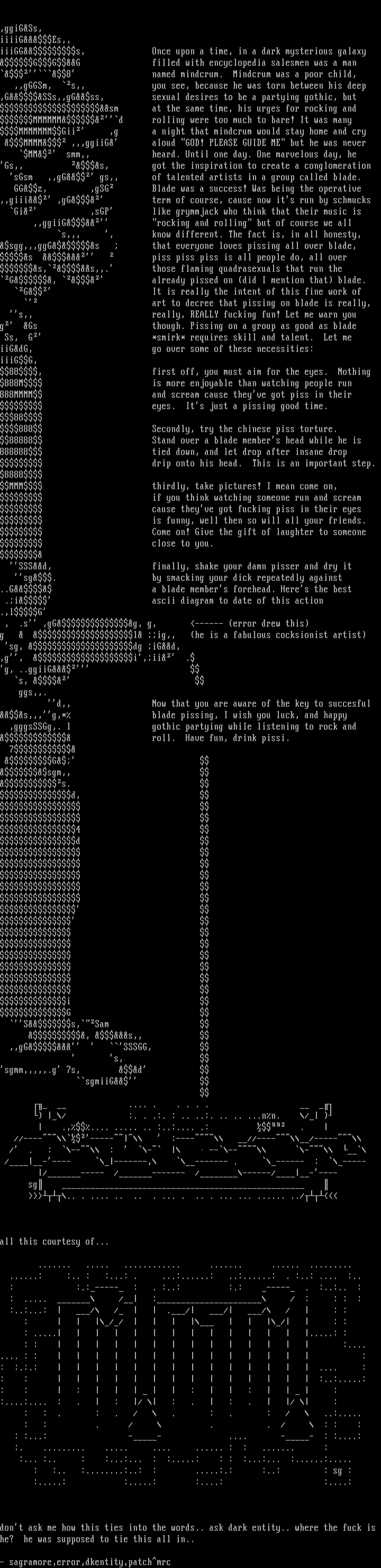 s,,,g,* blade pissing, I wish you luck, and happy