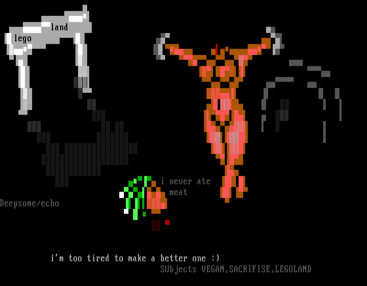 SUbjects VEGAN,SACRIFISE,LEGOLAND
