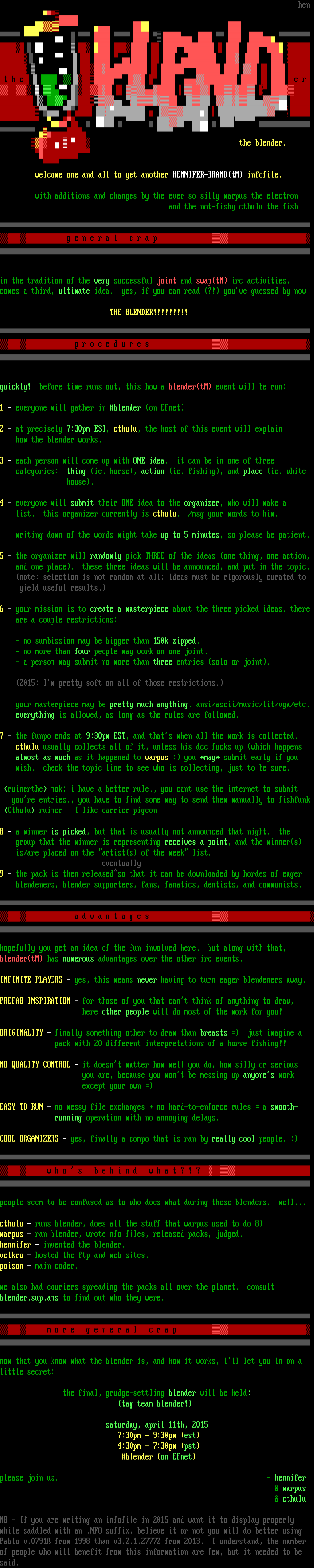warpus - ran blender, wrote nfo files, released packs, judged.