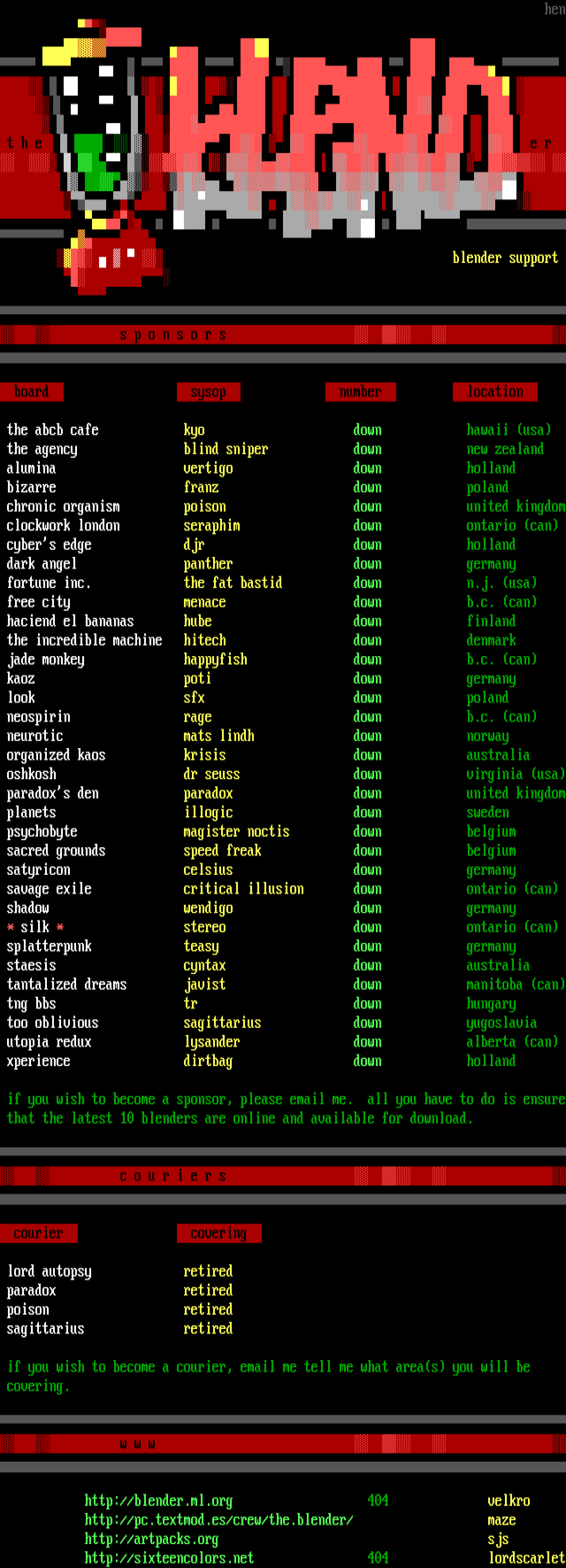 if you wish to become a sponsor, please email me. all you have to do is ensure that the latest 10 blenders are online and available for download.