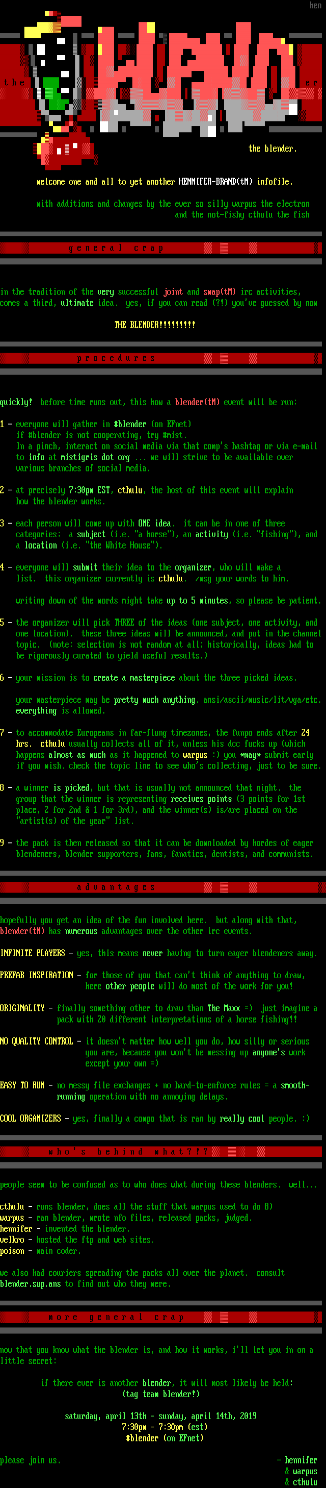 warpus - ran blender, wrote nfo files, released packs, judged.