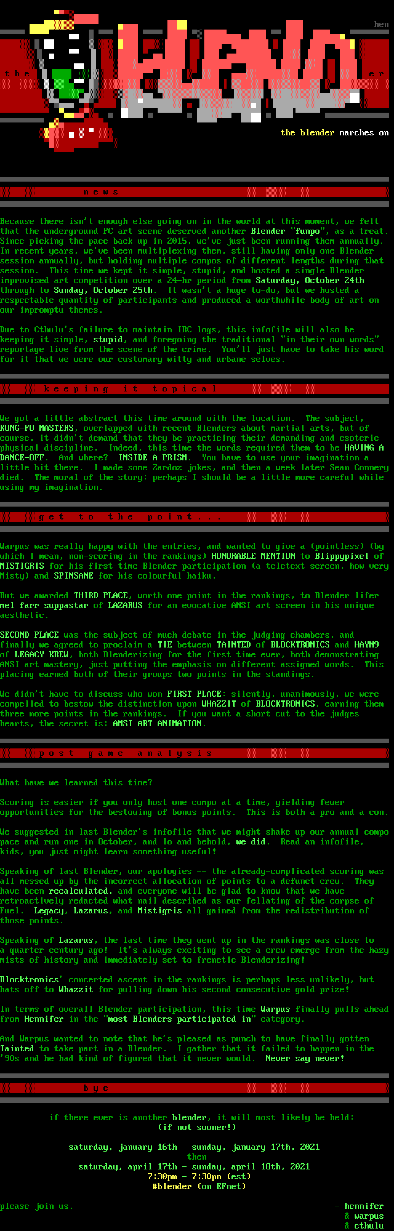 We suggested in last Blenders infofile that we might shake up our annual compo