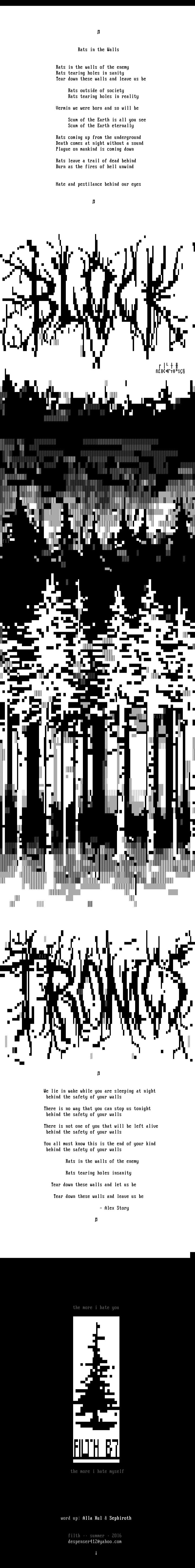 Rats in the Walls Rats in the walls of the enemy Rats tearing holes in sanity Tear down these walls and leave us be Rats outside of society Rats tearing holes in reality Vermin we were born and so will be Scum of the Earth is all you see Scum of the Earth eternally Rats coming up from the underground Death comes at night without a sound Plague on mankind is coming down Rats leave a trail of dead behind Burn as the fires of hell unwind Hate and pestilance behind our eyes 1