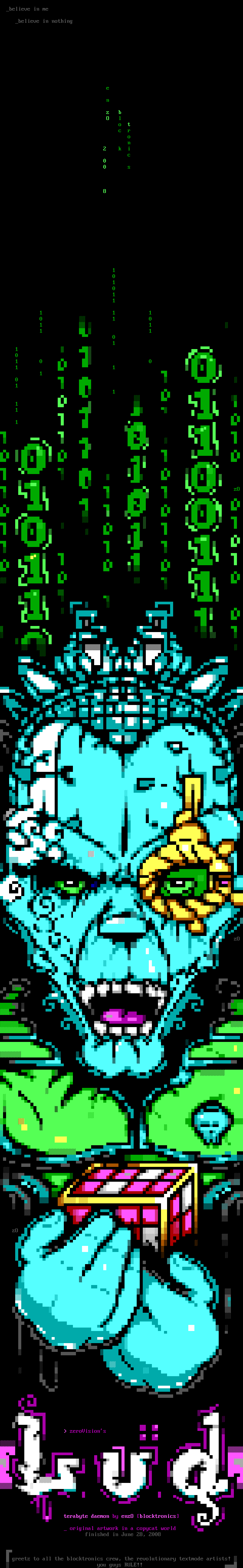 greetz to all the blocktronics crew, the revolutionary textmode artists!