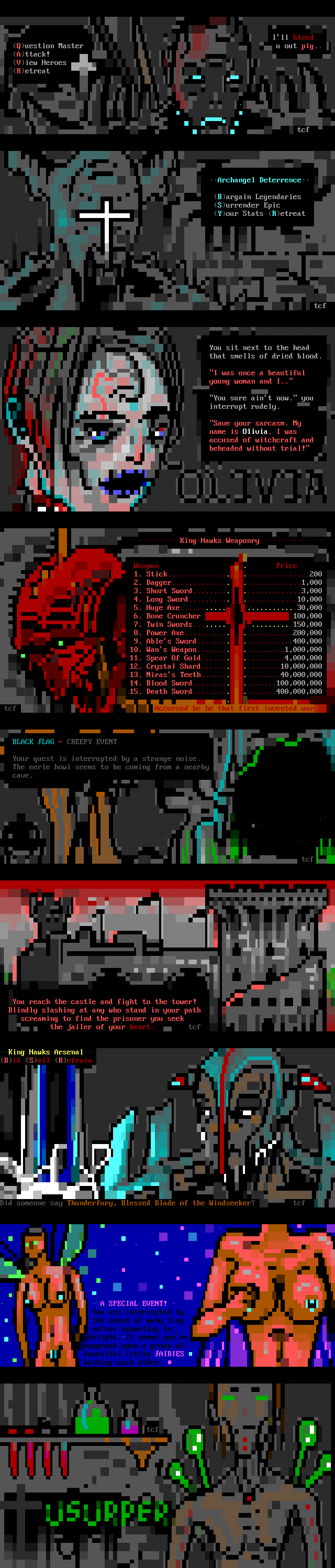 You reach the castle and fight to the tower! Blindly slashing at any who stand in your path screaming to find the prisoner you seek the jailer of your heart. tcf