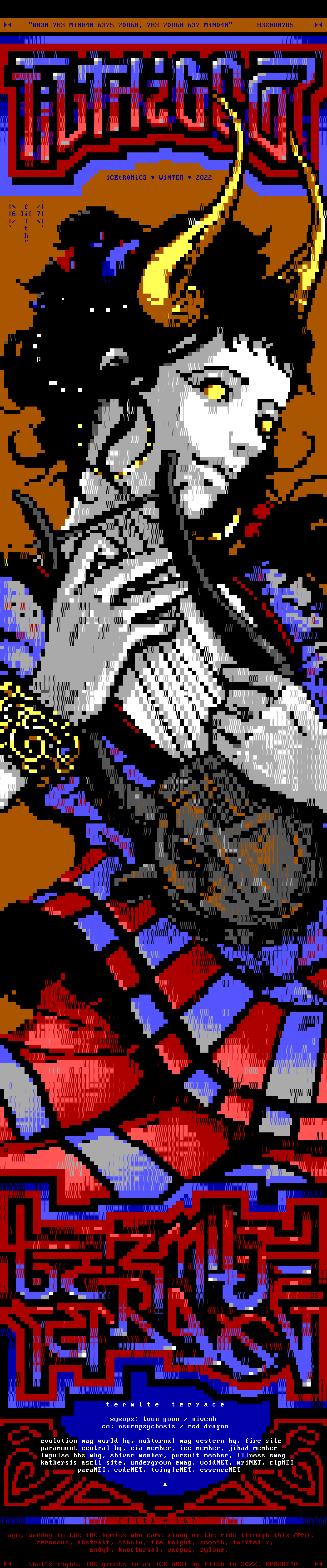thats right, iRC greetz in an iCE ANSi by filth in 2022. RPRZNT!@