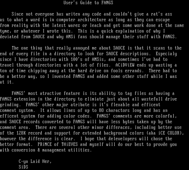 deviated from SAUCE and why ANSi fans should manage their stuff with FANGS.