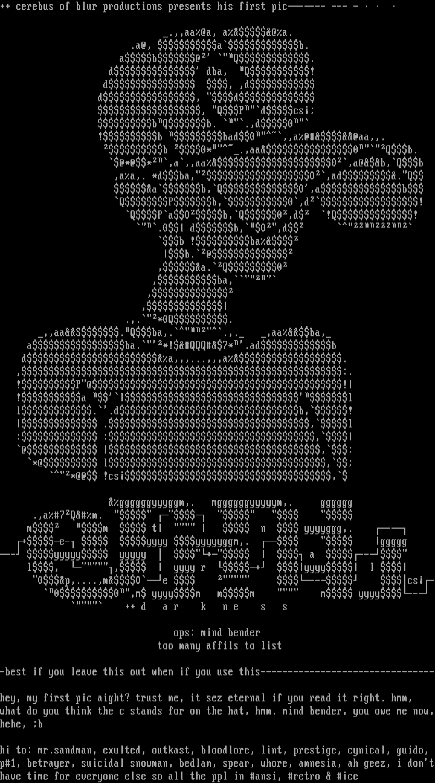p1, betrayer, suicidal snowman, bedlam, spear, whore, amnesia, ah geez, i donthave time for everyone else so all the ppl in ansi, retro ice