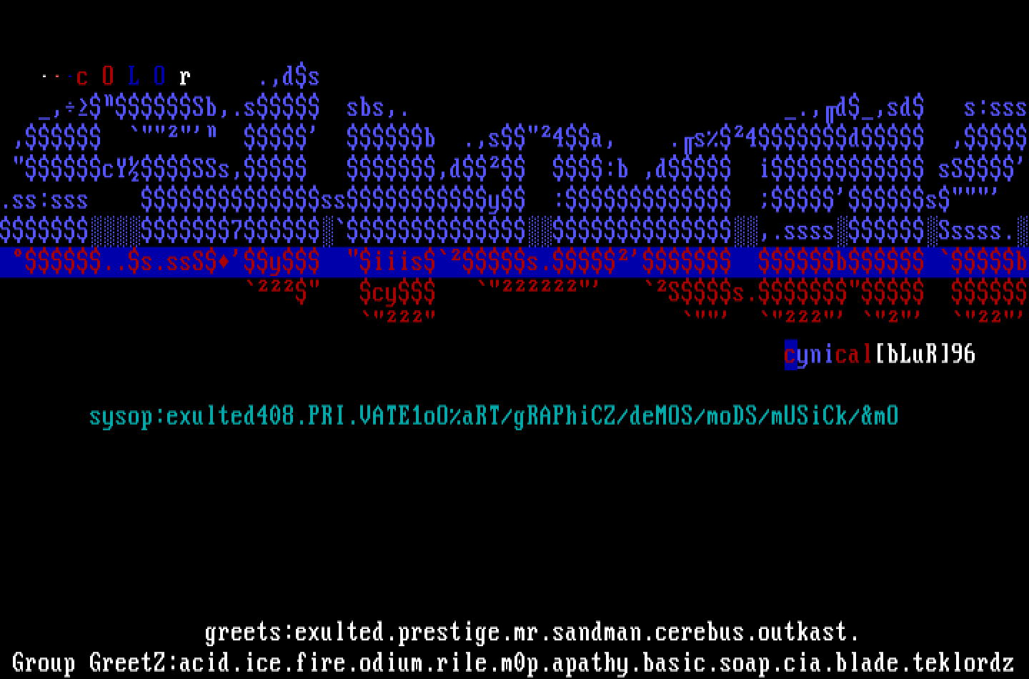 Group GreetZ:acid.ice.fire.odium.rile.m0p.apathy.basic.soap.cia.blade.teklordz