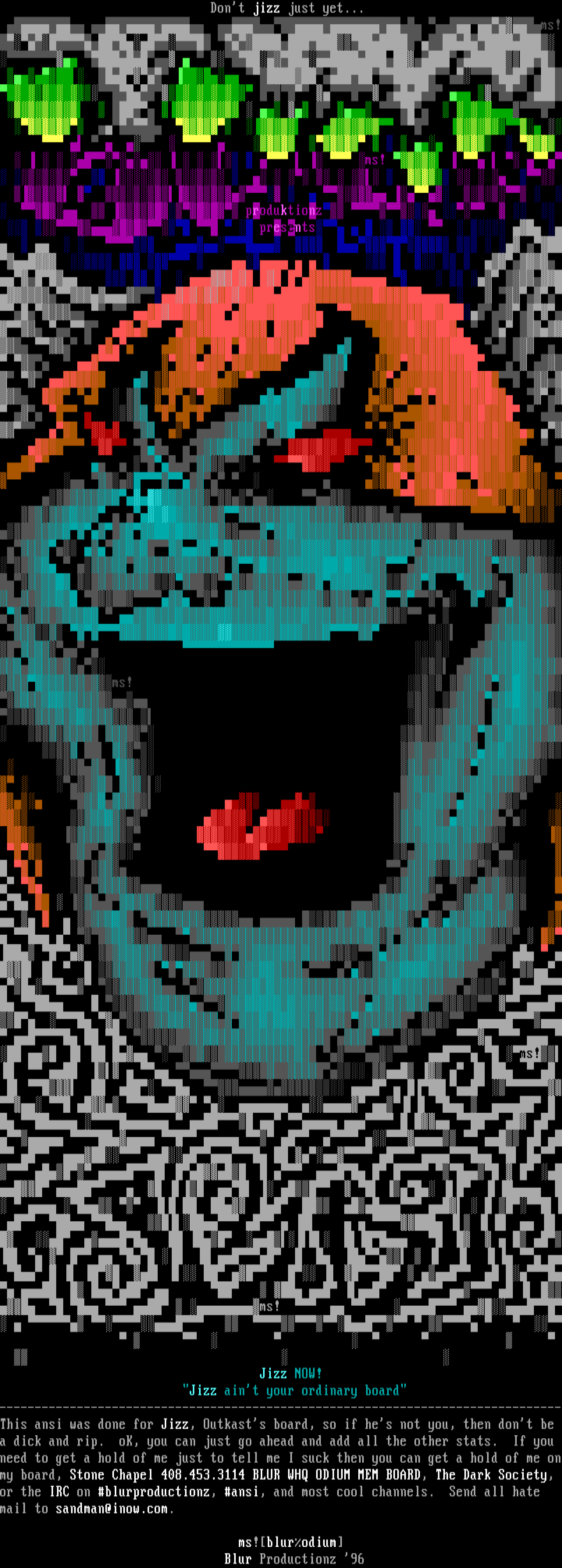 or the IRC on blurproductionz, ansi, and most cool channels. Send all hate