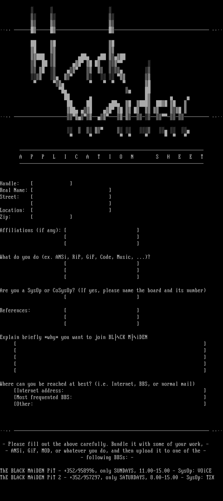 ThE BLACK MAiDEN PiT - +352/958996, only SUNDAYS, 11.00-15.00 - SysOp: VOiCE