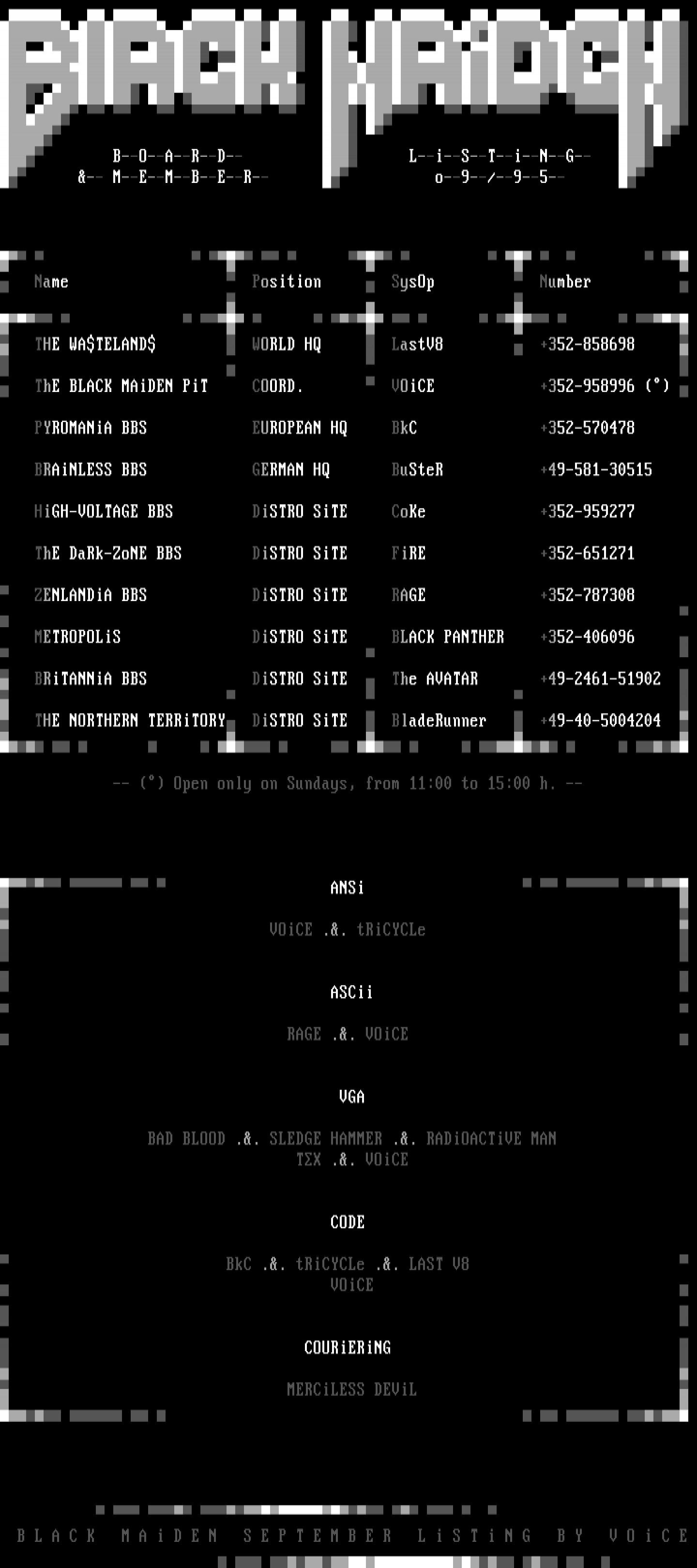 ThE BLACK MAiDEN PiT COORD. VOiCE +352-958996