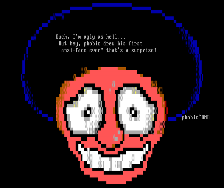 Ouch, Im ugly as hell... But hey, phobic drew his first ansi-face ever! thats a surprise! phobicBMB