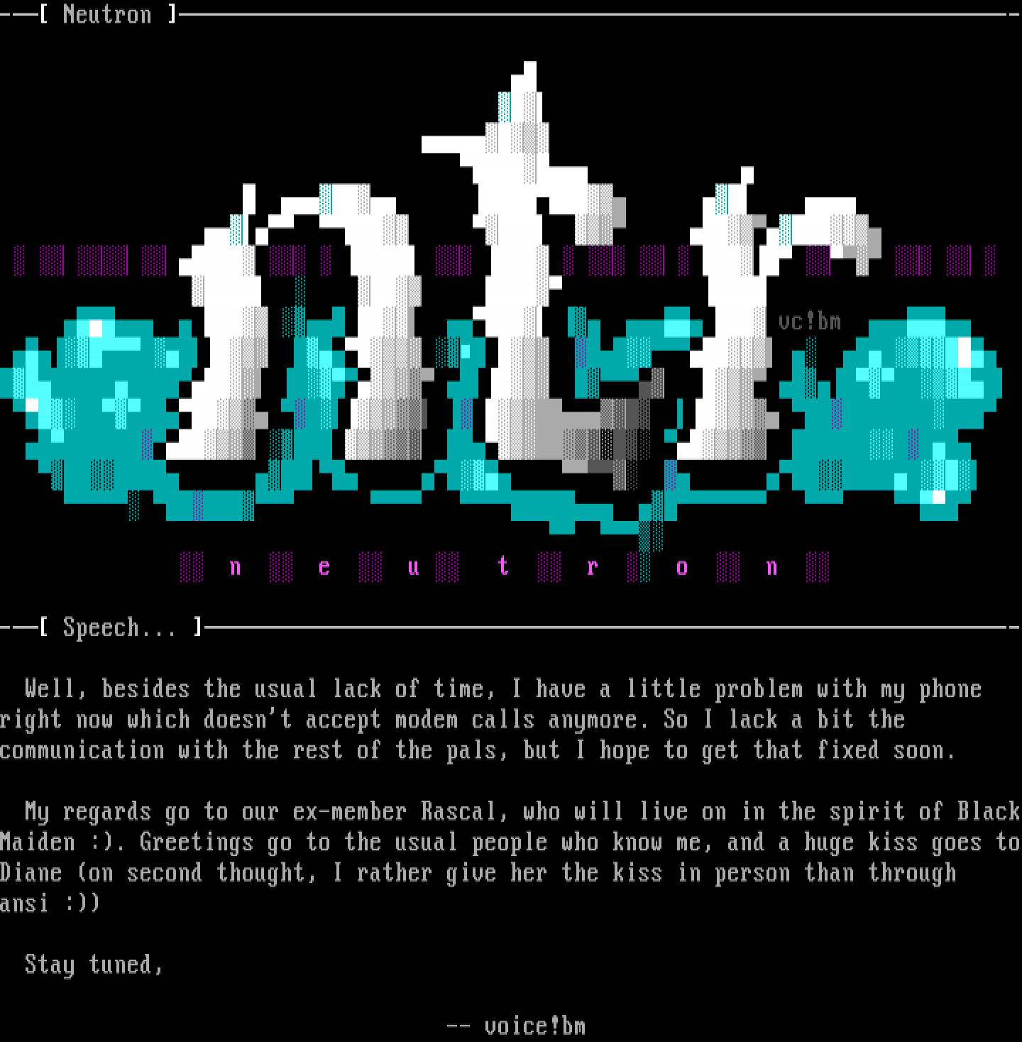 My regards go to our ex-member Rascal, who will live on in the spirit of BlackMaiden :. Greetings go to the usual people who know me, and a huge kiss goes toDiane on second thought, I rather give her the kiss in person than through
