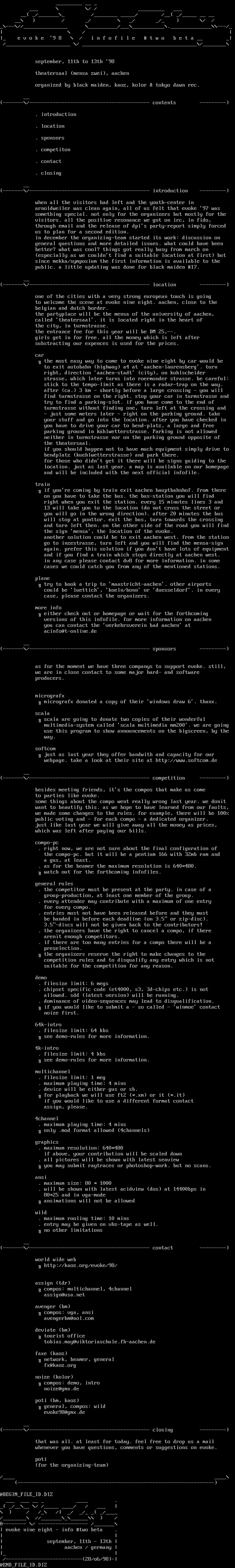 e v o k e 9 8 / i n f o f i l e t w o b e t a