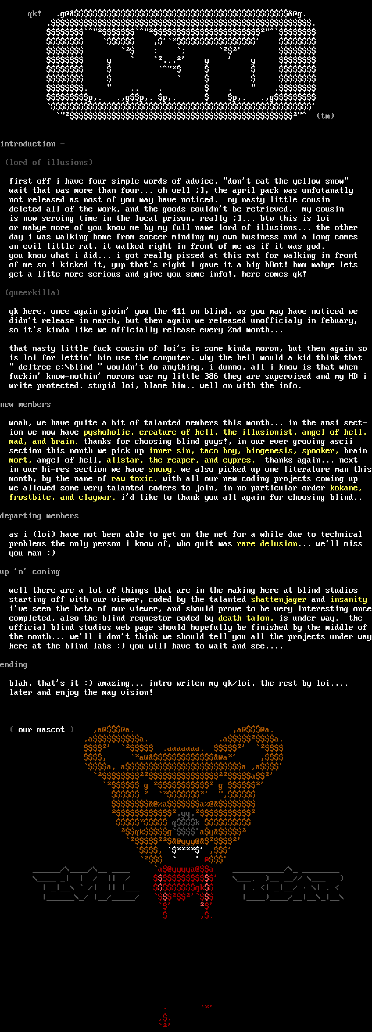 mad, and brain. thanks for choosing blind guys!, in our ever growing ascii