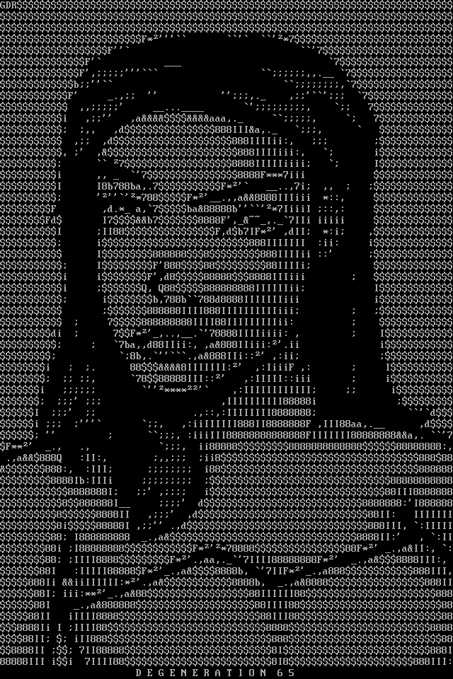 88I :IIIII88888F*.,a8888b, 7IIF*.,a888888III,888Ii iiIIIIII:*.,a8888b, .,a8888888II88I iii:**.,a8888IIIIII8888888I .,a88888888IIII888888II iIIII888888III88888888Ii I IIII888888888888II iII888888888888II 7II888888I888I88888III ii 7IIII888I8888III: D E G E N E R A T I O N 6 5