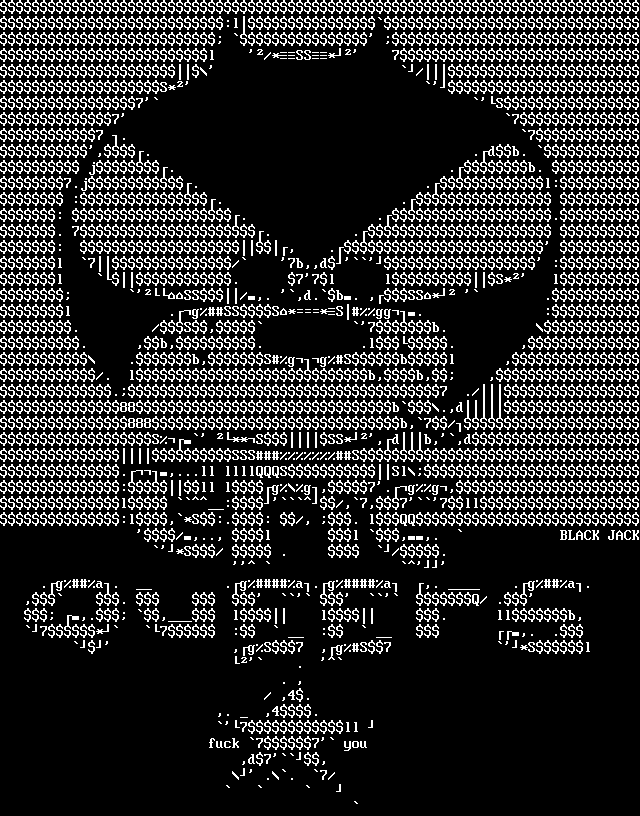 :l l /*SS* 7 /S* 7 S7 77 . 7,. .db. j. .b. 7.j. .l: :. . : . ... 7. . : , . l 7/ 7b,,d :l . 77l lS* l SS/,. ,d.b. ,SS* .l .gSSS**Sgg. :. /S, 7b. . ,b,. .l. , .b,SggSbl ,/. lb,b, ,.7 ./88b.,d888b,7/S **SSS*,db,,dSSSS.,...ll llllQQQSSl:ll lgg,7.gg,l :/,7,77ll:l,*S:.: /, . lQQ /,.., l l ,,. BLACK JACK *S/ . /.