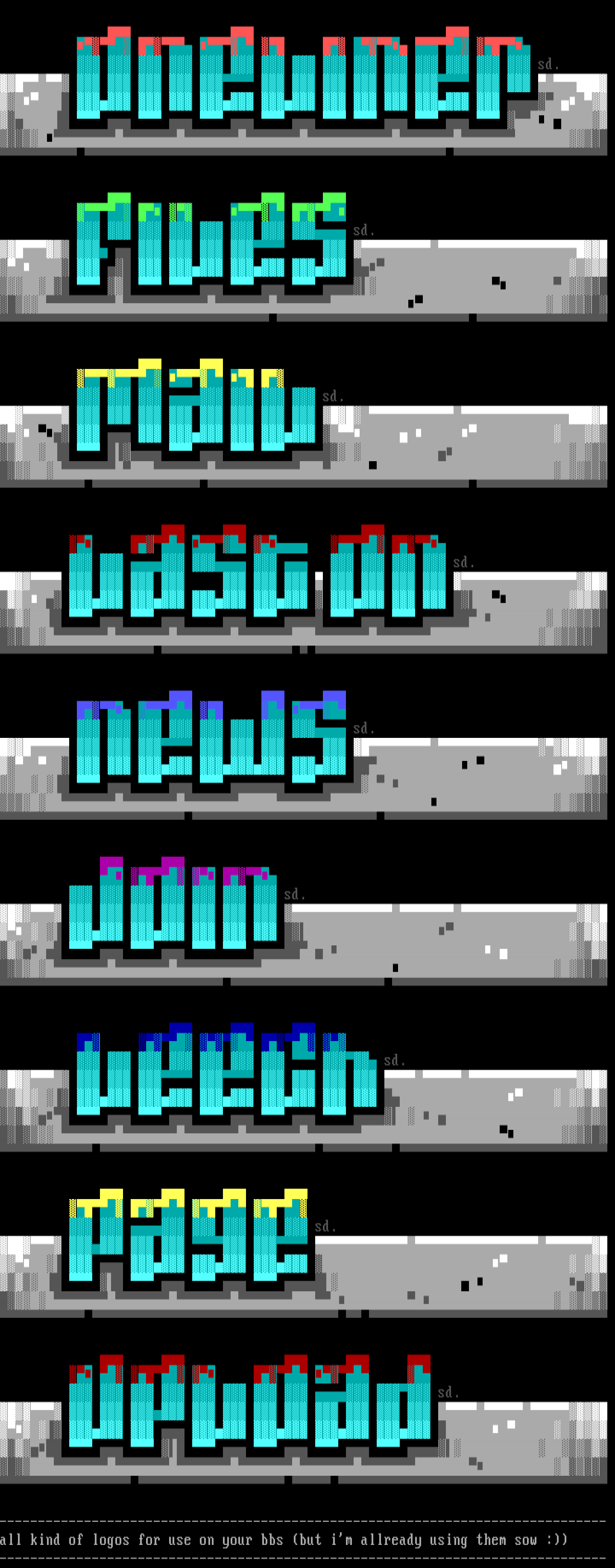 ------------------------------------------------------------------------------- all kind of logos for use on your bbs but im allready using them sow :