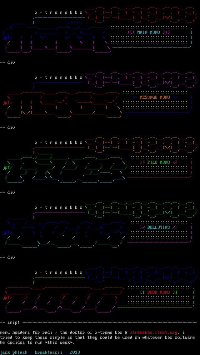 menu headers for rudi / the doctor of x-treme bbs @ xtremebbs.flnet.org. i