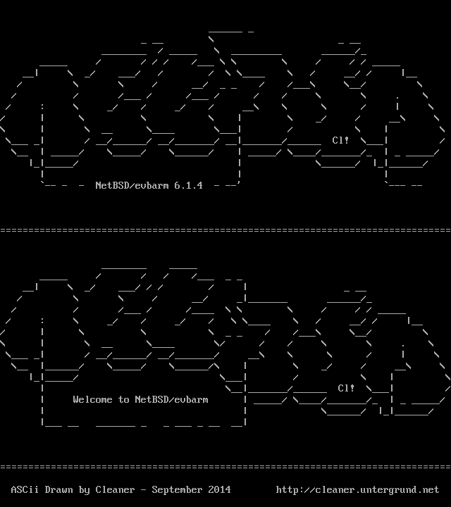 / / / Cl! / Welcome to NetBSD/evbarm / // /