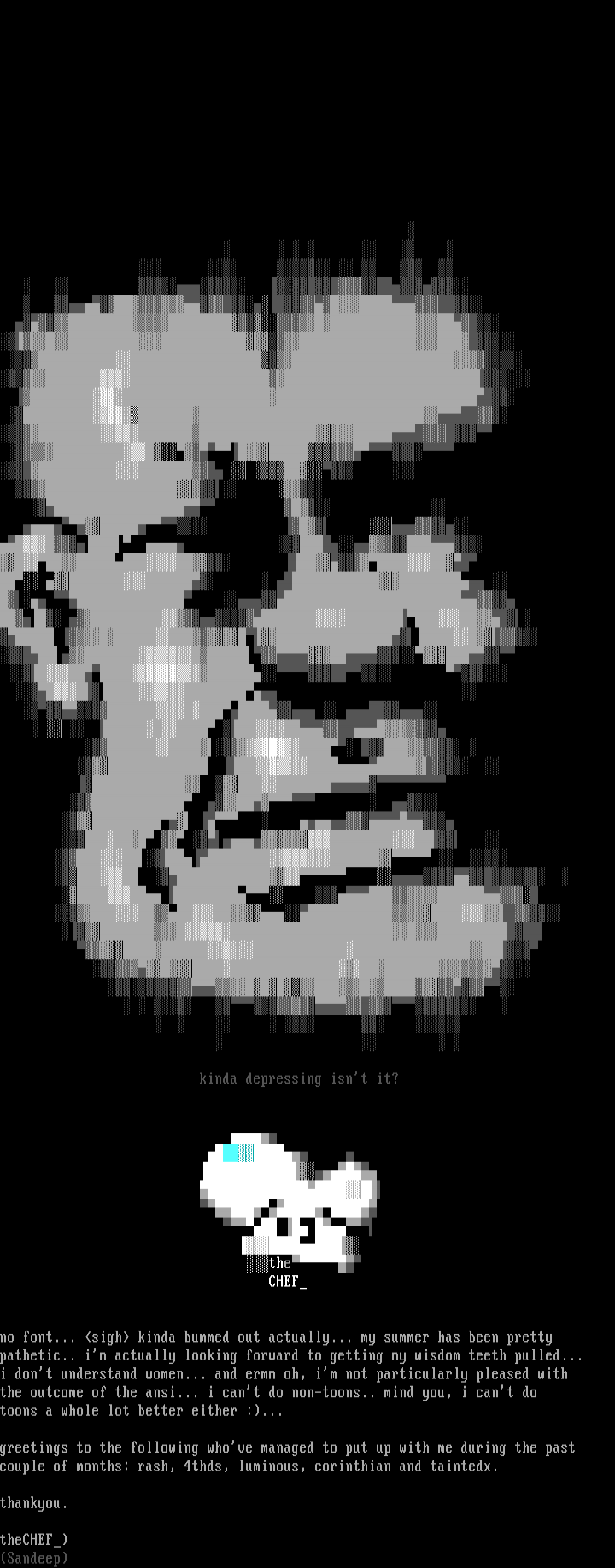 no font... sigh kinda bummed out actually... my summer has been pretty