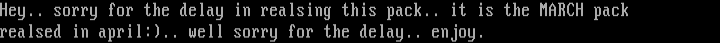 Hey.. sorry for the delay in realsing this pack.. it is the MARCH pack