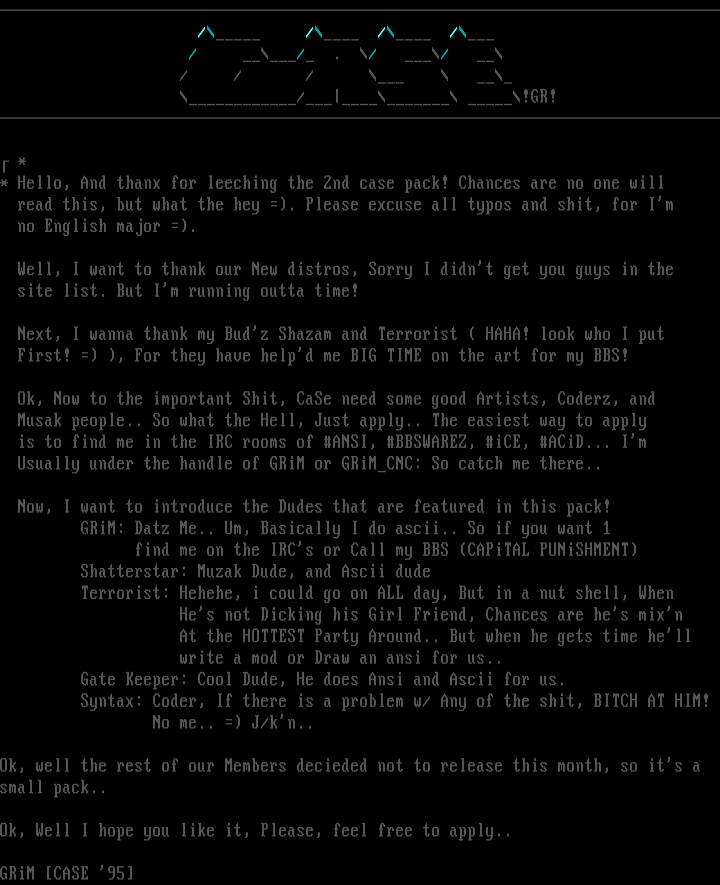 is to find me in the IRC rooms of ANSI, BBSWAREZ, iCE, ACiD... Im