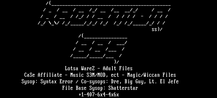 Sysop: Syntax Error / Co-sysops: Dre, Big Guy, Lt. El Jefe