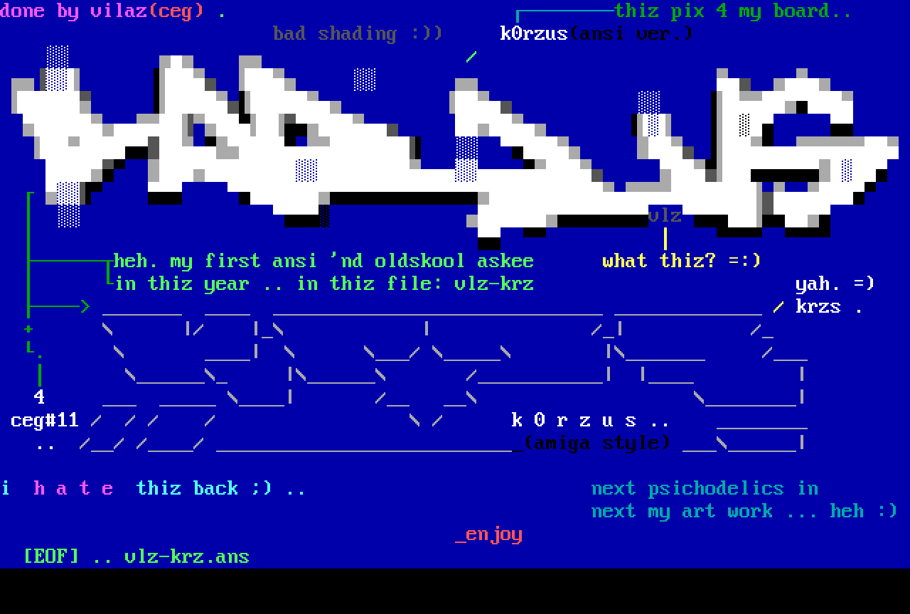 heh. my first ansi nd oldskool askee what thiz? : in thiz year .. in thiz file: vlz-krz yah.